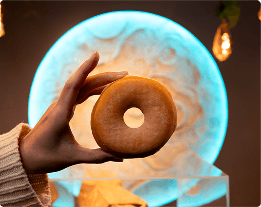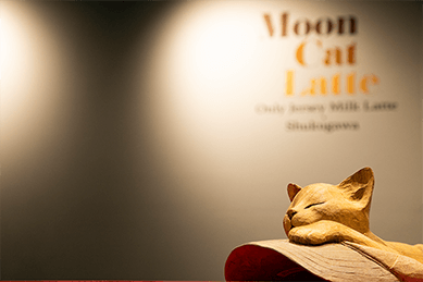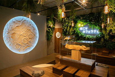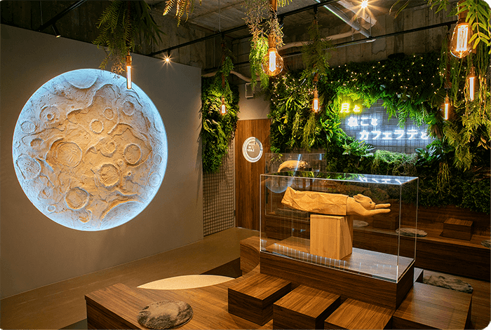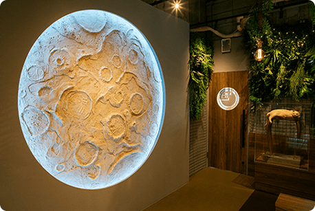 店内に設置された大きな月のオブジェは、まるで本物の月が降り立ったかのような幻想的な雰囲気を演出します。