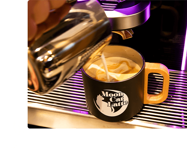 魔法の60℃ミルクを使った美味しいラテとスイーツをお楽しみいただけます。
